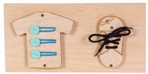 Nauka sznurowania i zapinania guzików. Wyposażenie: