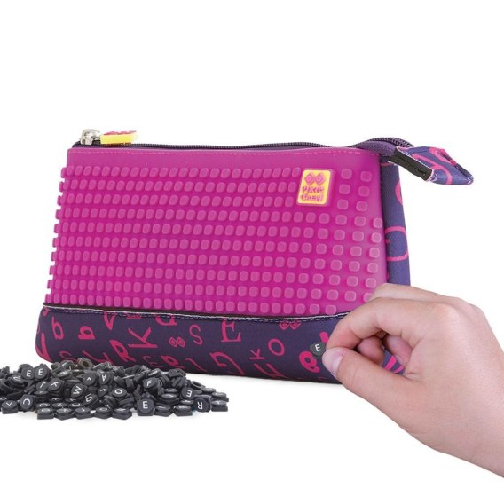 Duży, wielofunkcyjny piórnik na suwak PIXIE CREW Alfabet, z kreatywnym purpurowym panelem, na którym można tworzyć oryginalne i spersonalizowane grafiki, za pomocą małych silikonowych, kolorowych pikseli. Wykonany został z praktycznego, wytrzymałego neoprenu z nadrukiem liter w kolorze fuksji. Piórnik zapinany jest na suwak. Wewnątrz znajduje się wystarczająco dużo miejsca nie tylko na przybory szkolne, ale również na inne małe rzeczy, które chcemy mieć pod ręką. Dlatego doskonale sprawdzi się także jako kosmetyczka czy saszetka. Piórnik jest sprzedawany z dodatkowym darmowym zestawem około 100 pikseli.