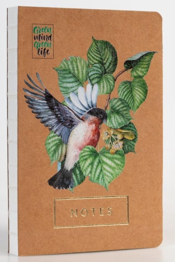 Ozdobny notes ekologiczny Green Life z motywem roślinnym. Notatnik z tekturową okładką pochodzącą z recyklingu.