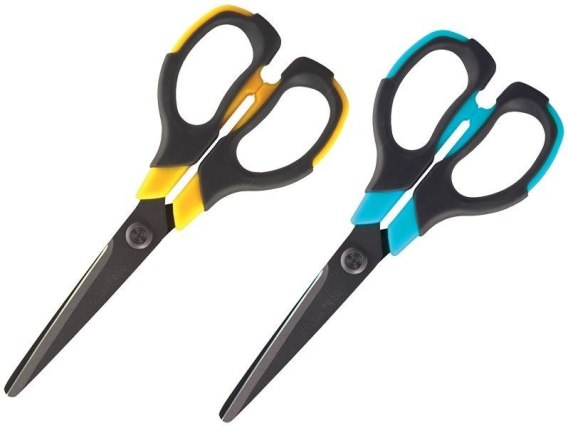 Nożyczki wykonane ze stali nierdzewnej. Ostrze pokryte fluorem odporne na przywieranie kleju oraz taśmy klejącej. Idealnie wyprofilowany, miękki uchwyt sprawia, że nożyczki mogą być używane zarówno przez osoby praworęczne jak i leworęczne. Opakowanie: blister