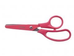 Nożyczki szkolne z plastikowymi uchwytami. Długość 13,4 cm. Ostrza z nierdzewnej stali zaokrąglone na końcach. Kolor różowy.