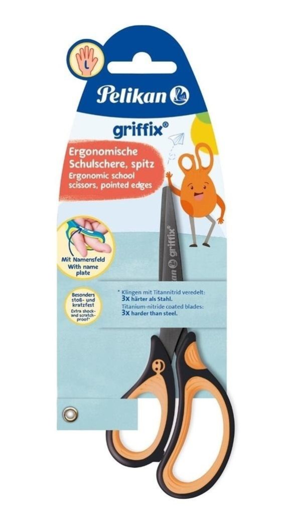 - umieszczona na uchwytach buźka, wskazuje prawidłowe ułożenie nożyczek w dłoni,