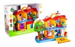 Zabawka, która umożliwi każdemu maluchowi poznanie zwyczajów panujących w domu. Domek jest pełen ciekawych niespodzianek, ekscytujących światełek oraz wypełniony dźwiękami i rymowankami prawie w każdym miejscu. Maluch naciskając na przedmioty i urządzenia znajdujące się w domku, usłyszy ich realistyczny dźwięk, między innymi odgłos skrzypiących drzwi, naturalne dźwięki telefonu, kuchenki czy pralki. Dodatkową radość sprawi dziecku możliwość przełączenia zabawki z dźwięków na wesołe rymowanki. Pociecha naciskając wtedy na dany przedmiot, który wydawał realistyczny odgłos, usłyszy zabawną rymowankę. Każda z funkcji domu to kreatywna zabawa, która pobudzi twórczość dziecka. Zabawka wspomaga naukę codziennych czynności domowych, jak również uczy logicznego myślenia.