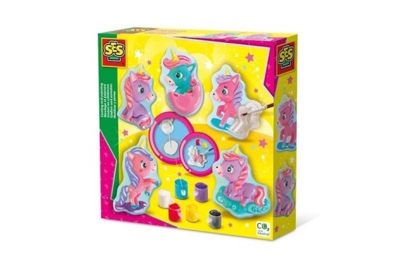 Ten zestaw do odlewania gipsu pozwala na wykonanie pięciu różnych figurek jednorożców, które możesz pomalować za pomocą dołączonych farbek (6 kolorów) Szczegółowa forma odlewnicza zapewni fantastyczne rezultaty. Produkt idealny by spędzić czas z dzieckiem w kreatywny sposób!
