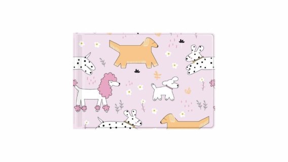 Okładka wykonana z folii PVC z pełnym, ozdobnym nadrukiem, wewnątrz usztywniona tekturą. Wyposażona w 2 pojedyncze koszulki i 2 kieszonki na wewnętrznej stronie okładek. Zabezpiecza e-legitymację szkolną, kartę miejską czy inne dokumenty w formacie ID-1.