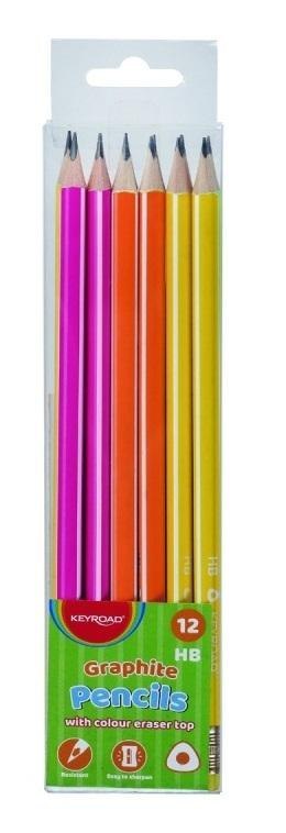 Ołówek HB z gumką trójkątny neonowy 12szt
