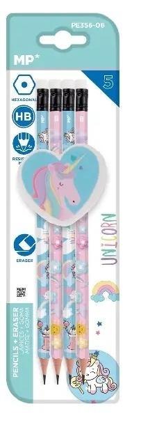 Ołówek sześciokątny HB z dodatkową gumką - Jednorożec 4szt