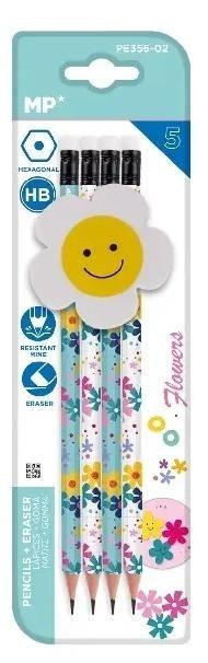 Ołówek sześciokątny HB z dodatk. gumką Kwiaty 4szt