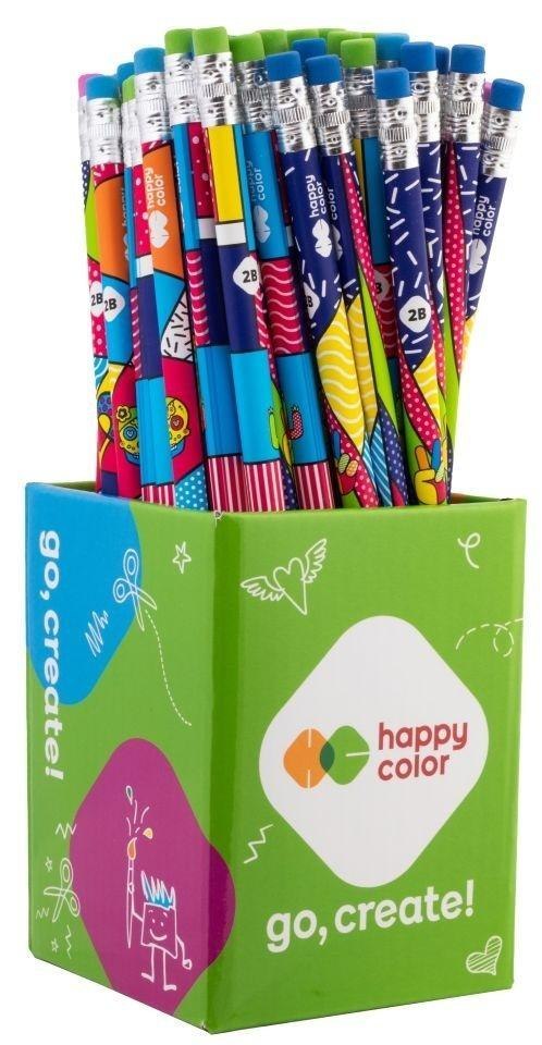 Ołówek trójkątny 2B z gumką Pop (72szt) w kubku