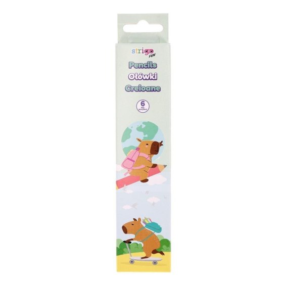 Zestaw 6 ołówków HB z limitowanej serii Kapibara. Ołówki z gumką w pastelowych kolorach, to praktyczne i estetyczne narzędzie do pisania, kreślenia i rysowania.