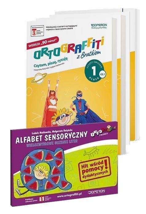 Zestaw pierwszoklasisty zawiera dwa zeszyty ćwiczeń, karty pracy oraz innowacyjną i niezwykłą pomoc do nauki liter, czyli Alfabet sensoryczny. W każdym semestrze nauki wykorzystacie jeden zeszyt i mniej więcej połowę kart pracy. To oznacza, że dysponujecie materiałami na cały rok i możecie śledzić na bieżąco postępy w nauce.