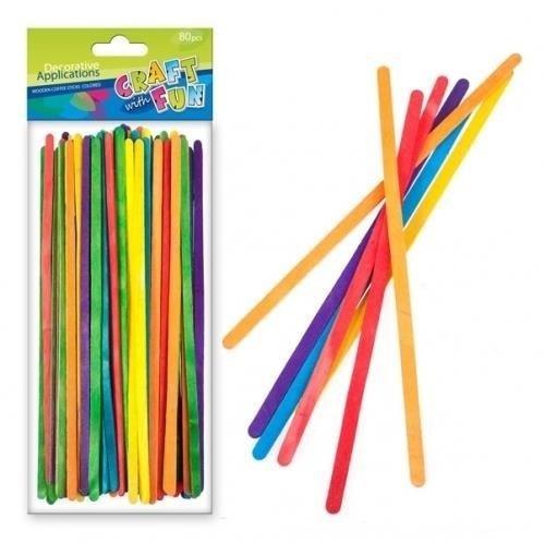 W opakowaniu znajduje się 80 długich, różnokolorowych patyczków. Patyczki wykonane z drewna..