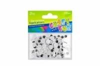 Dekoracyjne ruchome oczy od Craft With Fun idealnie nadają się do kreatywnego ozdabiania, scrapbookingu oraz innego rękodzieła. Oczy tworzą ciekawy efekt przy różnego rodzaju pracach plastycznych. Używaj tych produktów w połączeniu z innymi akcesoriami oraz kompletami z serii Craft With Fun! W opakowaniu znajduje się 100 naklejek Oczu. Oczy posiadają ruchome, czarne źrenice. Średnica produktu: 10 mm. Wszystkie elementy wykonane z tworzywa sztucznego.