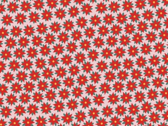Papier do pakowania - Gwiazda Betlejemska w kolorze jasnym różowym z kolorowym nadrukiem, wymiary ok 70 x 200 cm.
