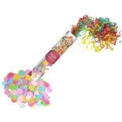 Party Duo idealne połączenie kolorowych, papierowych serpentyn i konfetti - w pierwszej kolejności energicznym ruchem wystrzel konfetti, potem dopraw rzutem serpentyn. Serpentyny no-mess, doczepione do opakowania. Konfetti niestety nie, jeszcze takiego które samo wskakuje z powrotem do tuby nie wymyślili. Długość serpentyn ok. 6 m. Produkt posiada certyfikat FSC, co oznacza że surowiec zastosowany do jego wytworzenia pochodzi z materiałów pozyskanych legalnie, odpowiedzialnie i bez uszczerbku dla środowiska oraz lokalnych społeczności.