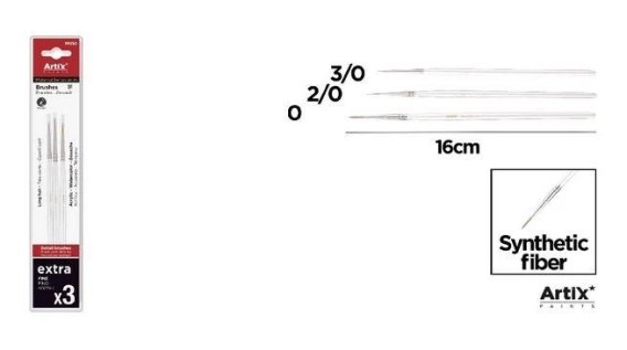 Profesjonalny pędzel z korpusem z drewna lakierowanegona biało. Okrągła metalowa skuwka i bardzomiękkie syntetyczne włosie. Długość: 20 cm.Można je stosować z farbami akwarelowymi, akrylowymii temperowymi. Opakowanie zawiera 3 sztuki:3 pędzle z skuwką i okrągły pędzel z numerami8, 10 i 12 do wypełniania małych obszarówi mieszania farby z wodą do technik mokrych,pociągnięć i drobnych detali dzięki cienkiejkońcówce.