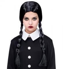 Peruka czarna z warkoczami to wyjątkowy dodatek, który pozwala stworzyć mroczny i efektowny wygląd na karnawał, Halloween lub imprezę tematyczną. Włosy mają głęboki czarny kolor z delikatnym połyskiem i ułożone są w dwa długie, proste warkocze z przedziałkiem na środku. Peruka mocowana jest na elastycznej siateczce, co zapewnia wygodne dopasowanie do głowy. Produkt w rozmiarze uniwersalnym doskonale sprawdzi się jako uzupełnienie stroju, nadając mu wyrazisty i tajemniczy charakter.