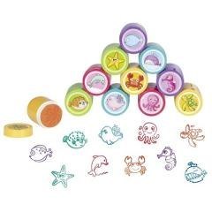 Plastikowe pieczątki z motywami morskimi, sprzedawane losowo. Dzieci mogą tworzyć własne podwodne scenki, ozdabiając rysunki i kartki. Zabawa rozwija kreatywność, precyzję ruchów oraz wyobraźnię.Cena dotyczy jednej pieczątki.