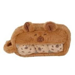 Pluszowy piórnik z motywem kapibary o wymiarach 19 x 10 x 7 cm. Miękki i uroczy, idealny na przybory szkolne. W zestawie przypinki mini kapibar, które dodają mu wyjątkowego charakteru.