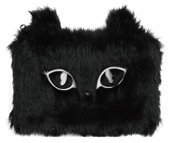 • Piórnik-saszetka włochata, na suwak, czarna - kot