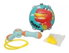 Plastikowy pistolet z pojemnikiem na wodę w formie plecaczka. Dzieci napełniając zbiornik wodą dzięki paskom mogą założyć pojemnik na plecy, a dzięki wężykowi będą mieć "dostęp" do wody. Plecaczek jest okrągły z wizerunkiem dinozaura. Jest odporny na uszkodzenia. Produkt dla dzieci od 3 lat. Podane wymiary stanowią wymiar opakowania. Produkt zapakowany w przezroczysty worek.