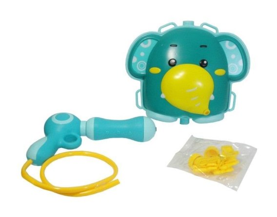 Plastikowy pistolet z pojemnikiem na wodę w formie plecaczka. Dzieci napełniając zbiornik wodą dzięki paskom mogą założyć pojemnik na plecy, a dzięki wężykowi będą mieć "dostęp" do wody. Plecaczek jest okrągły z wizerunkiem dinozaura. Jest odporny na uszkodzenia. Produkt dla dzieci od 3 lat. Podane wymiary stanowią wymiar opakowania. Produkt zapakowany w przezroczysty worek.