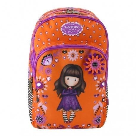 Wyjątkowo praktyczny i piękny plecak z wizerunkiem dziewczynek Gorjuss w odcieniach błękitu i pudrowego różu. Ma miękkie i wygodne uchwyty do założenia na plecy z regulacją długości. Kieszenie zamykane na suwaki ozdobione medalionami w stylu antycznego mosiądzu z główką dziewczynki Gorjuss.