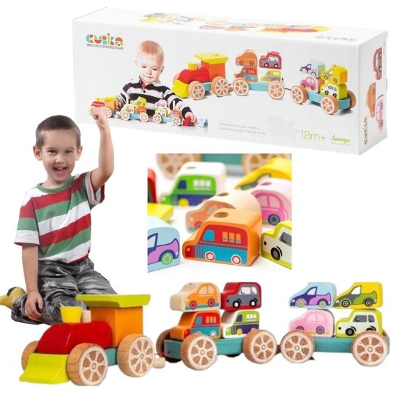 Kolejka ta to ciekawa wersja drewnianego konstruktora, która bez wątpienia przypadnie do gustu zarówno dzieciom, jak i dorosłym. Ze szczegółów zestawu okruchów można złożyć prawdziwy pociąg z lokomotywą i wagonami. Zabawka wykonana jest z naturalnego drewna wysokiej jakości, detale nie posiadają odprysków i odprysków. Malowany jasnymi farbami na bazie wody. Maluch z przyjemnością nauczy się kolorów, zapozna się z partyturą, rozwinie zręczność, wyobraźnię i koordynację ruchów podczas zabawy.