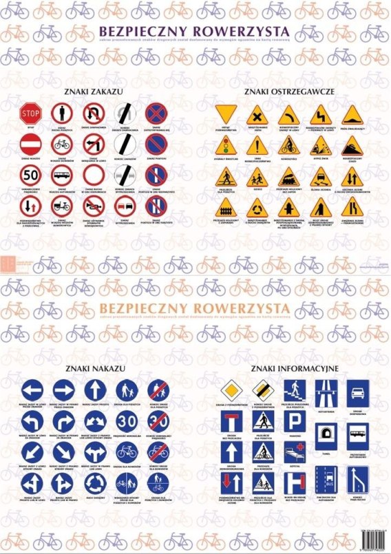BEZPIECZNY ROWERZYSTA-znaki drogowe-podkładka dwustronna laminowana format A-2