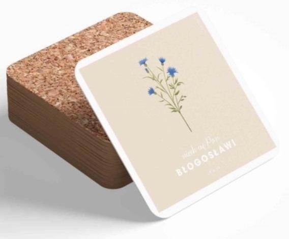 Podstawka korkowa pod kubek o wymiarach 10cm x 10cm.