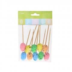 Kolorowe przepiórcze jajeczka na piku. Pakowane po 10 sztuk. Wielkość: 7-8 cm.