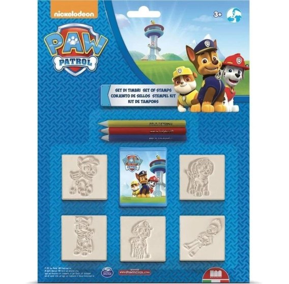Pieczątki na licencji Psiego Patrolu. W skład zestawu wchodzi: 5 pieczątek, 1 poduszeczka do tuszu oraz 3 kredki.