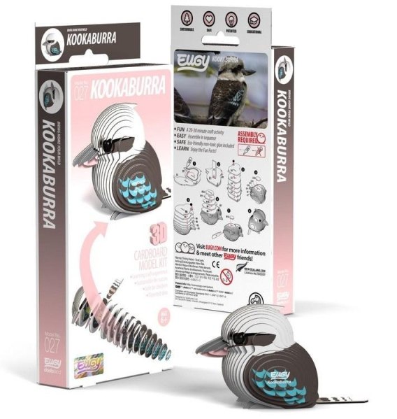 Eugy zaprojektowane w Nowej Zelandii są wykonane z przyjaznego dla środowiska kartonu pochodzącego z recyklingu i farby na bazie ryżu. Zestaw zawiera ponumerowane elementy układanki, nietoksyczny klej oraz instrukcję do sklejenia ptaka. Zbierz całą serię zwierząt, ptaków, dinozaurów i wiele innych. Dla dzieci w wieku 6 lat+.