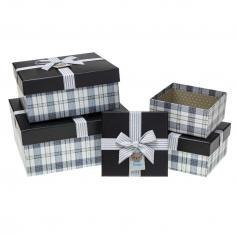 Pudełko kwadrat z kokardą 4szt krata ROZETTE
