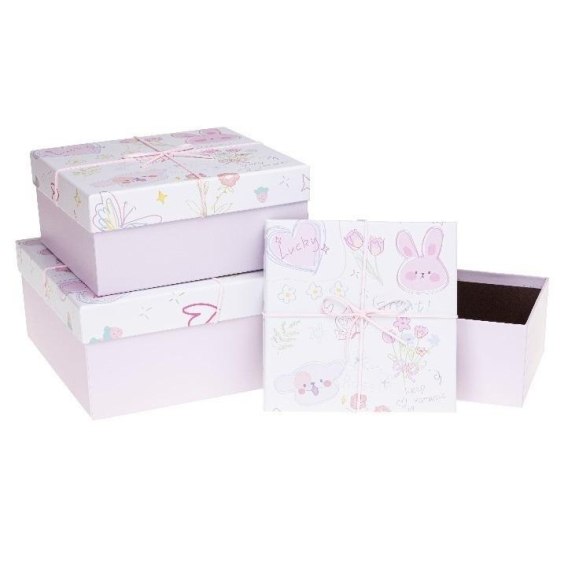 Zestaw pudełek prezentowych 3szt, motyw pastelowy fiolet z obrazkami