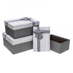Pudełko prostokątne z kokardą 3szt szary ROZETTE