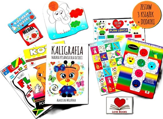 ROZWÓJ PRZEZ ZABAWĘ 3-7 LAT ZESTAW 3 KSIĄŻEK Z DODATKAMI Super zestaw 3 książek dla dzieci w wieku przedszkolnym. W zestawie następujące książki: FLAGI ŚWIATA. TO LUBIĘ! KOTY. POZNAJĘ I KOLORUJĘ KALIGRAFIA. NAUKA PISANIA DLA DZIECI W zestawie dodatkowo znajdują się naklejki, gra Piotruś do wycinania i zabawy, Wycinanka- kostka emocji, plan lekcji i zabawy. Zestaw zapakowany w foliowy worek.