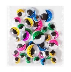 Ruchome oczka z rzęsami mix kolorowe 36szt