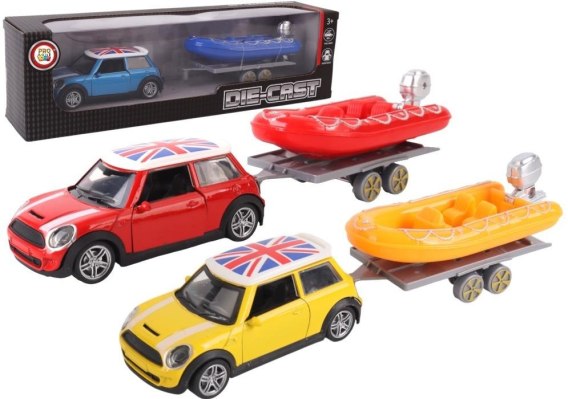 Zestawy z serii Samochód z przyczepą to idealna propozycja dla małych miłośników podróży, motoryzacji i letnich eskapad. Każdy komplet zawiera stylizowany metalowy samochód z napędem pull-back oraz dopasowaną przyczepę z wymiennym pojazdem rekreacyjnym do wyboru łódź motorowa, ponton, quad lub sportowe coupe. Różnorodność modeli, intensywne kolory i szczegółowe wykonanie sprawiają, że zestawy nie tylko pobudzają wyobraźnię dziecka, ale też wprowadzają element edukacyjny ucząc rozpoznawania typów pojazdów i sytuacji użytkowych.