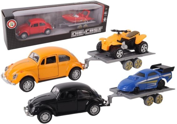 Zestaw zawiera jedną z trzech tematycznych przyczep z motorówką, quadem lub sportowym samochodem które idealnie wpisują się w klimat wakacyjnych aktywności na wodzie, w terenie lub na torze. Każda z przyczep jest wyposażona w solidny, ruchomy zaczep oraz szerokie koła, które gwarantują stabilność i płynność podczas zabawy.
