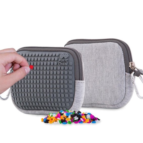 Praktyczna szara kosmetyczka na suwak PIXIE CREW z kreatywnym szarym panelem, na którym można tworzyć oryginalne i spersonalizowane grafiki, za pomocą małych silikonowych pikseli. Wykonana jest z praktycznego, wytrzymałego na wstrząsy i uderzenia neoprenu. Saszetka jest zapinana na suwak, z boku umieszczono karabińczyk. Wewnątrz znajduje się wystarczająco dużo miejsca na różne małe rzeczy. Sprzedawana jest z dodatkowym darmowym zestawem około 100 kolorowych pikseli.