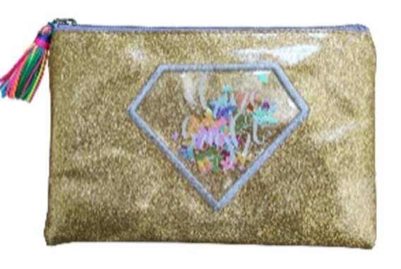 Saszetka zapinana na zamek, ozdobiona konfetti.