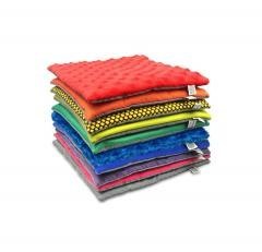 Na ścieżkę sensoryczną składa się 10 kwadratowych paneli, wypełnionych miękką watoliną, co daje przyjemny efekt przy stąpaniu po ścieżce, panele można układać w dowolnej kolejności dzięki czemu ilość kombinacji jest niezliczona.