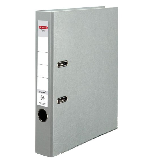 Segregator A4 z klasycznym mechanizmem dźwigowym, format A4, grzbiet 5cm. Okładka wykonana z tekstury, powlekana folią PP, wewnętrzna oleina w kolorze szarym. Wymienna etykieta grzbietowa, wtapiana kieszeń na etykietę. Producent Herlitz.