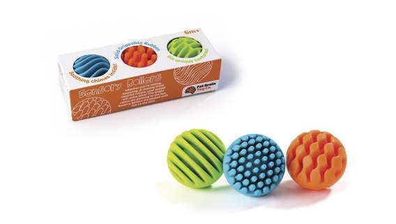 Zestaw 3 silikonowych, kolorowych, pięknych kul o różnorodnej fakturze z delikatnymi dzwoneczkami w środku. Wspaniała sensoryczna przygoda dla maluszka. Każda kula ma dwie różne faktury powierzchni, razem sześć wzorów. W kulach znajdują się dzwoneczki, delikatnie dzwoniące przy każdym ruchu, aby dodatkowo stymulować dziecko. Wielkość kul dostosowana jest do małych rączek. Kule wykonane są z wysokiej jakości silikonu, bez BPA, bezpieczne dla ząbkujących dzieci. Można myć w zmywarce.