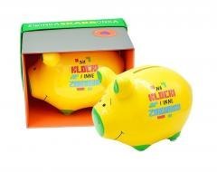 Skarbonka mała świnka SKM-013 "Na klocki i inne zabawki" Ceramiczna skarbonka w kształcie świnki to świetny pomysł na prezent. Świnki są kolorowe i ozdobione zabawnymi tekstami, świetnie się sprawdzą jako dekoracja pokoju. Cechy szczególne: Typ produktu: skarbonka na prezent, Materiał: ceramika Wys. świnki: 8,5 cm. Waga: 214 g Wymiary pudełka: 12,5 x 10 x 10 cm (dł x szer x wys) Opakowanie: kolorowy kartonik Okazja: ogólne życzenia, urodziny