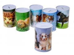 Skarbonka metalowa, zwierzątka, 14,5x10cm