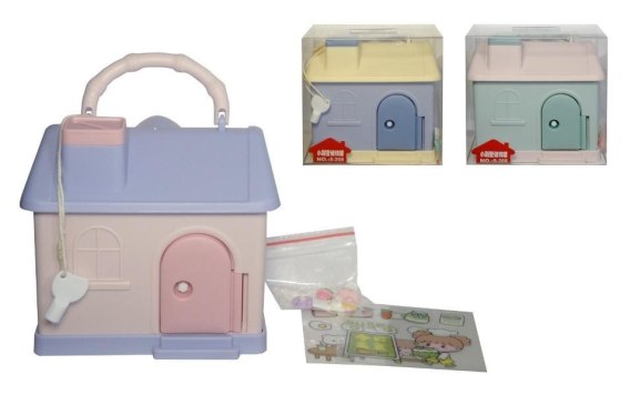 Skarbonka z uchwytem zamykana na klucz domek MIX