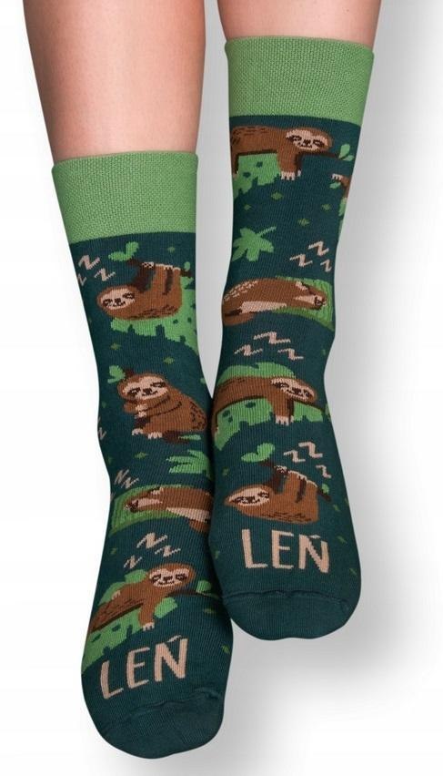 Jeszcze tylko pięć minut to najpopularniejsza maksyma śpiochów, leniwych istot i mistrzów prokrastynacji. Z myślą o nich stworzyliśmy urocze skarpetki nie do pary w leniwce w kolorze butelkowej zieleni! Wszak nie od dziś wiadomo, że bohaterowie naszych skarpet, mimo całkowitego braku wysiłku, ewoluowali do gatunku ludzkiego.