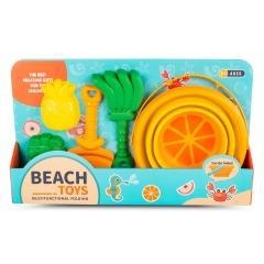 Szukasz zestawu do piasku dla dziecka, który będzie lekki, praktyczny i wygodny do zabrania na plażę lub do piaskownicy? Chcesz, aby zabawka zajmowała mało miejsca w torbie, a jednocześnie dawała wiele możliwości zabawy? Zestaw plażowy ze składanym silikonowym wiaderkiem i foremkami to doskonały wybór dla dzieci, które lubią budować zamki z piasku i tworzyć własne konstrukcje. Elastyczne wiaderko można łatwo złożyć, dzięki czemu świetnie sprawdza się podczas podróży i wakacyjnych wyjazdów. Kolorowe akcesoria zachęcają do kreatywnej zabawy i spędzania czasu na świeżym powietrzu.